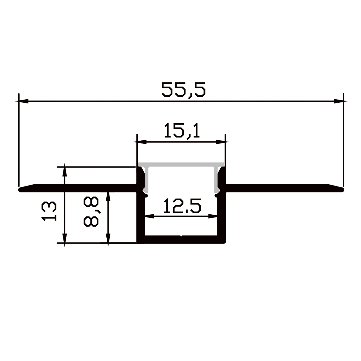 Алюминиевый профиль встраиваемый скрытого монтажа 55x13 (Комплект, Алюминий, 2 м)