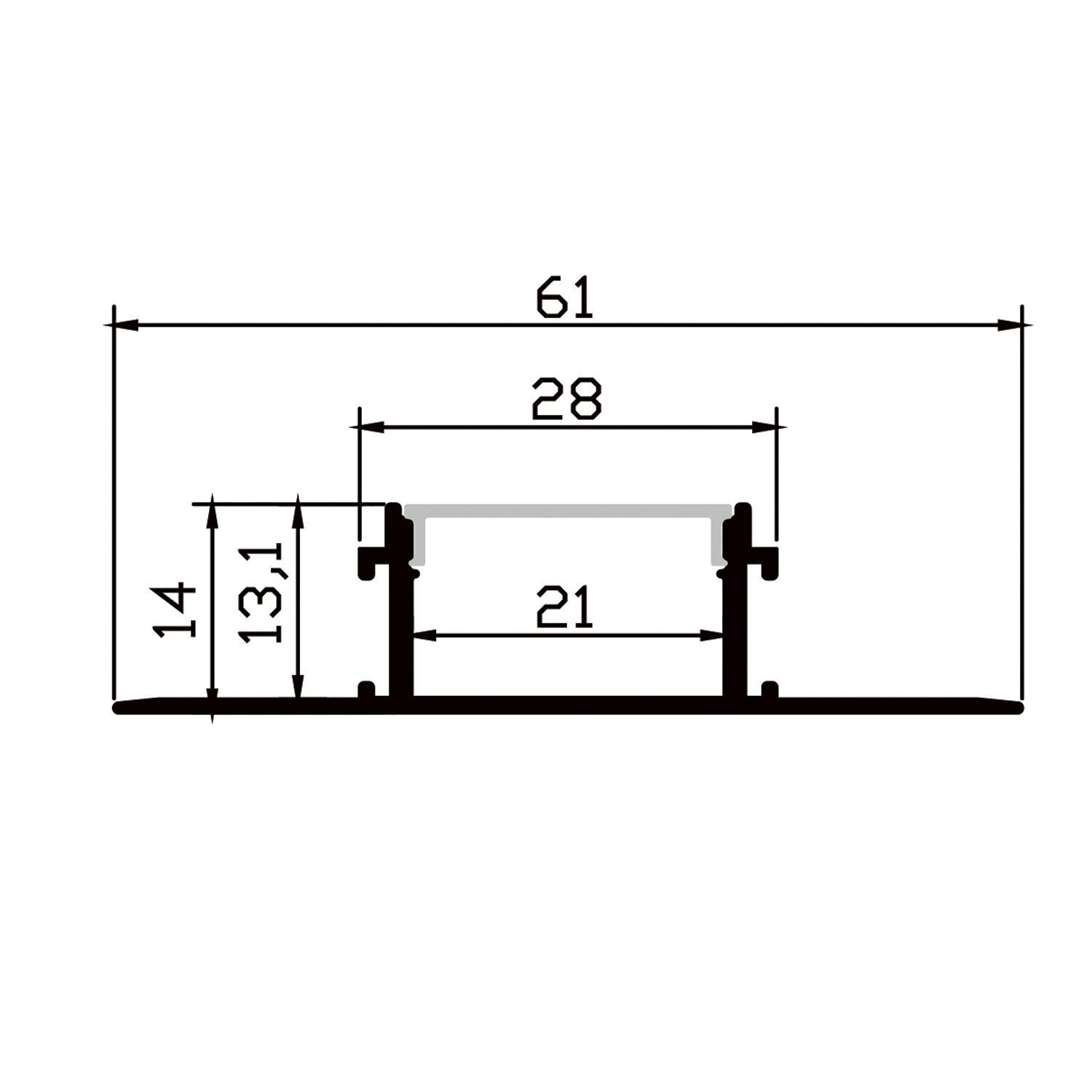 Алюминиевый профиль встраиваемый скрытого монтажа 61x14-A (Комплект, Алюминий, 2 м)
