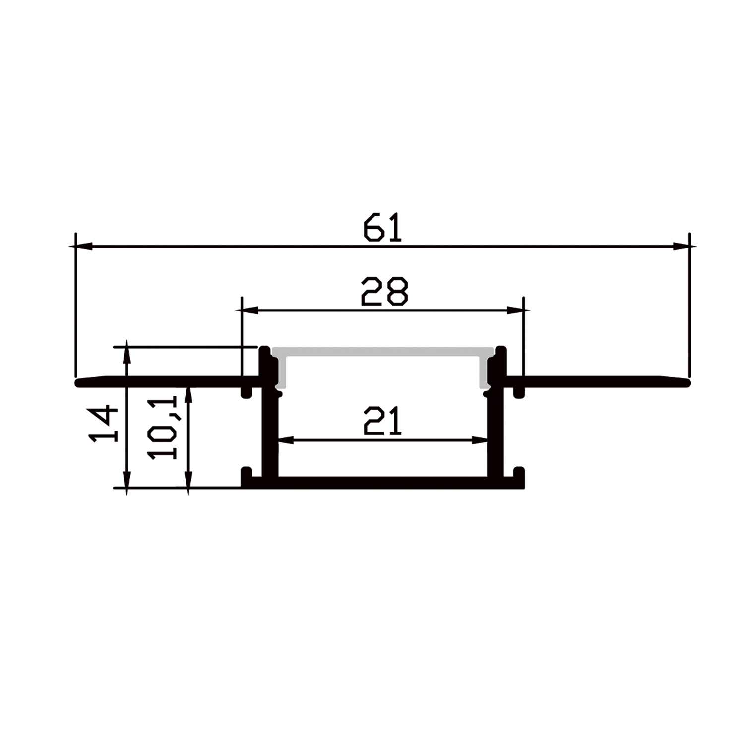 Алюминиевый профиль встраиваемый скрытого монтажа 61x14 (Комплект, Алюминий, 2 м)
